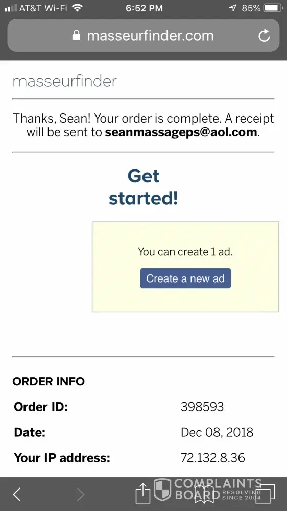 Read full complaint and 42 commentsAbout MasseurFinder.com