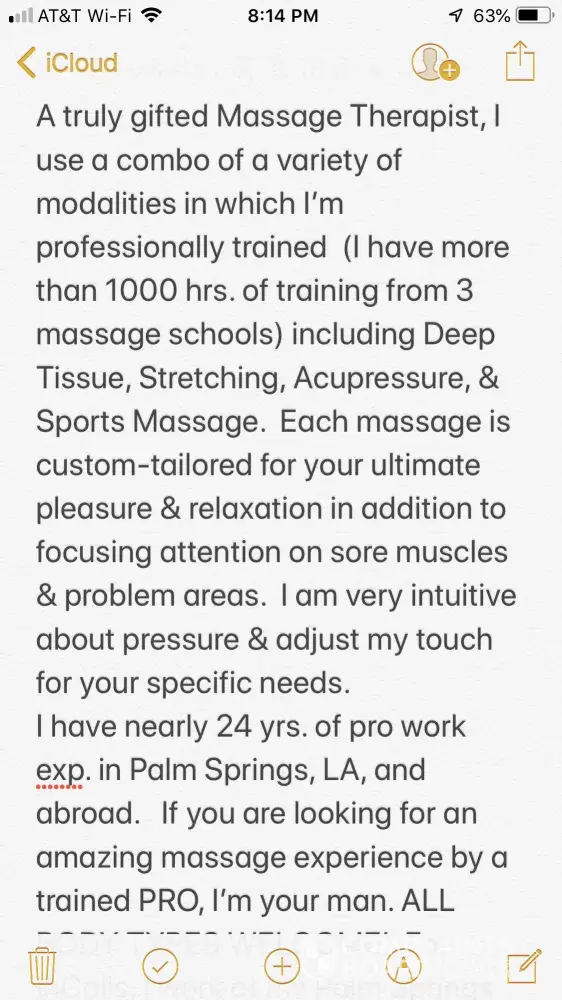 Hi there, I am Lamar, the masseur I’m question and I assure you that the allegations made in this post are nothing but blatant, egregious lies. I have never met with the writer of that post. He is NOT in my contacts and he is pathologically obsessed with destroying my reputation for no sensible reason that I can conceive of. I have treated my hundreds of paying clients with the utmost professionalism and respect and for someone to flagrantly make these blatantly mendacious allegations is a metaphorical slap in the face. I have had many five star reviews from satisfied clients who can attest to my professional nature. And I have dozens of satisfied clients who come to love my upscale massage service. Thank you for taking the time to read my response to this egregious post.