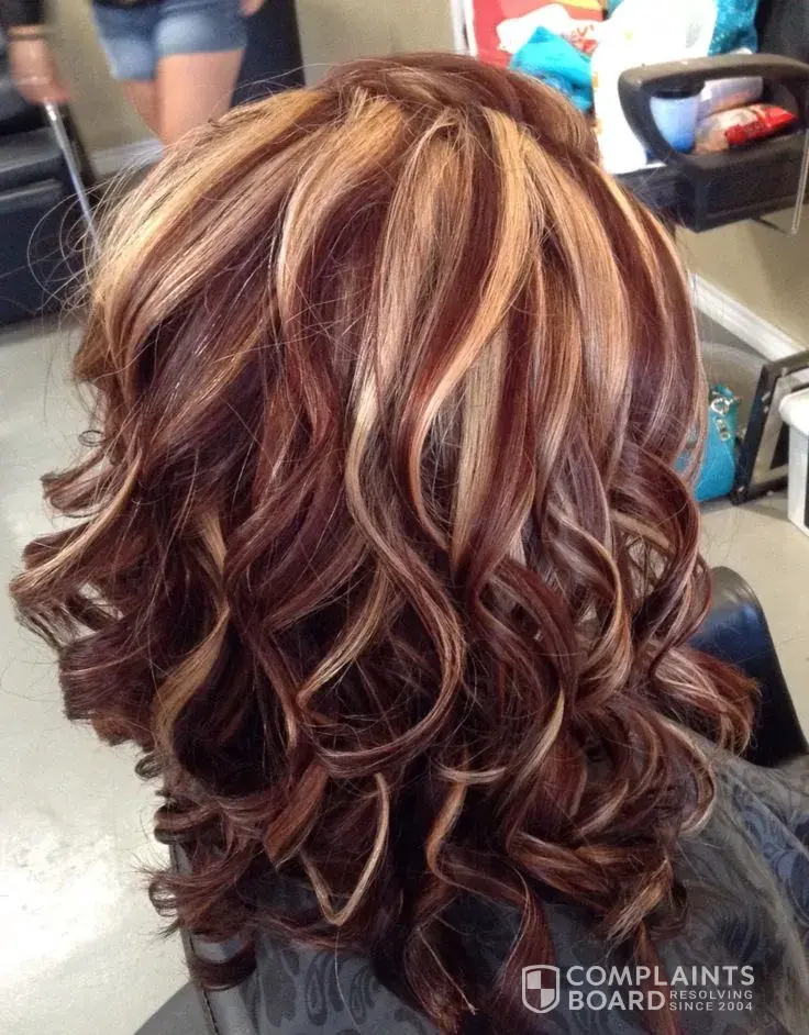 I wanted a cherry color hair color. Even though it did not look as the picture of the hair I attached below, I was satisfied with it and my stylist and color I did get. Below is a pic of complete color with me and my daughter. Then, 1 very important factor the stylist forgot to tell me for the first wash for someone who has never had red highlights. Donot wash in hot water. I took a shower and my hair is now pink. I have called the salon, no call back. I work alot of overtime. I have left messages. I need this fixed. It is not professional looking. I am in a professional job.