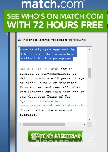 for many years I have been customer of match.com on and off like most people/ Many months ago when I wanted to subscribe I wanted to start with a free 3 day trial I am entitled to. then I would click on the subscription I wanted after the trial ended per usual. It would not take any of my credit card, it had error. I called each credit card company and I...