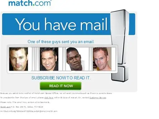 Match.com just sent me an email, saying that certain guys had sent me an email. Of course, none of those guys had sent me an email. Match had sent me the email by error - I had recently subscribed, and could see that none of those guys on the email had sent me an email.