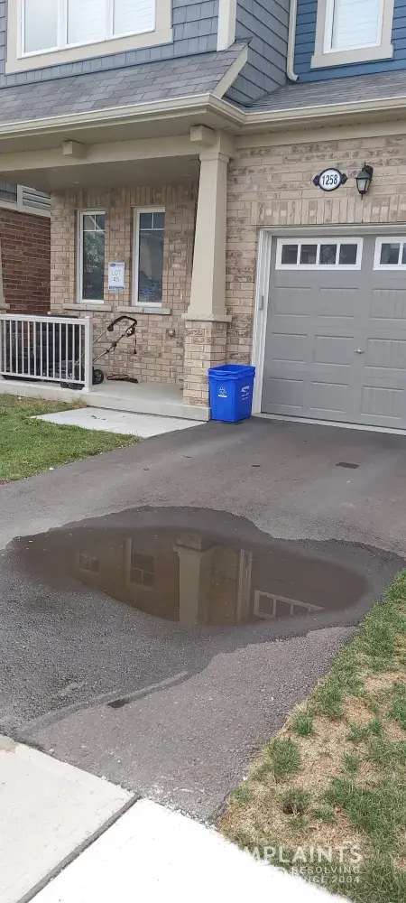 We are facing a big problem, since February 2020. My home is only 2 years old. We bought it new built from Matammy homes. My driveway was finished almost a year ago, since February 2020, we are having a big puddle on my driveway which caused many problems. On days that it rains, big puddles form and stay for many days until the water is suâ¸cked and cleaned away. I'm complaining about the problem since more than 8 months. Because of COVID 19, for excuses that it cannot be fixed. My home is still on warranty but they haven't fixed it. Whenever I tried to contact them, they always give a different excuse. Excuses like coordinator is changed etc.