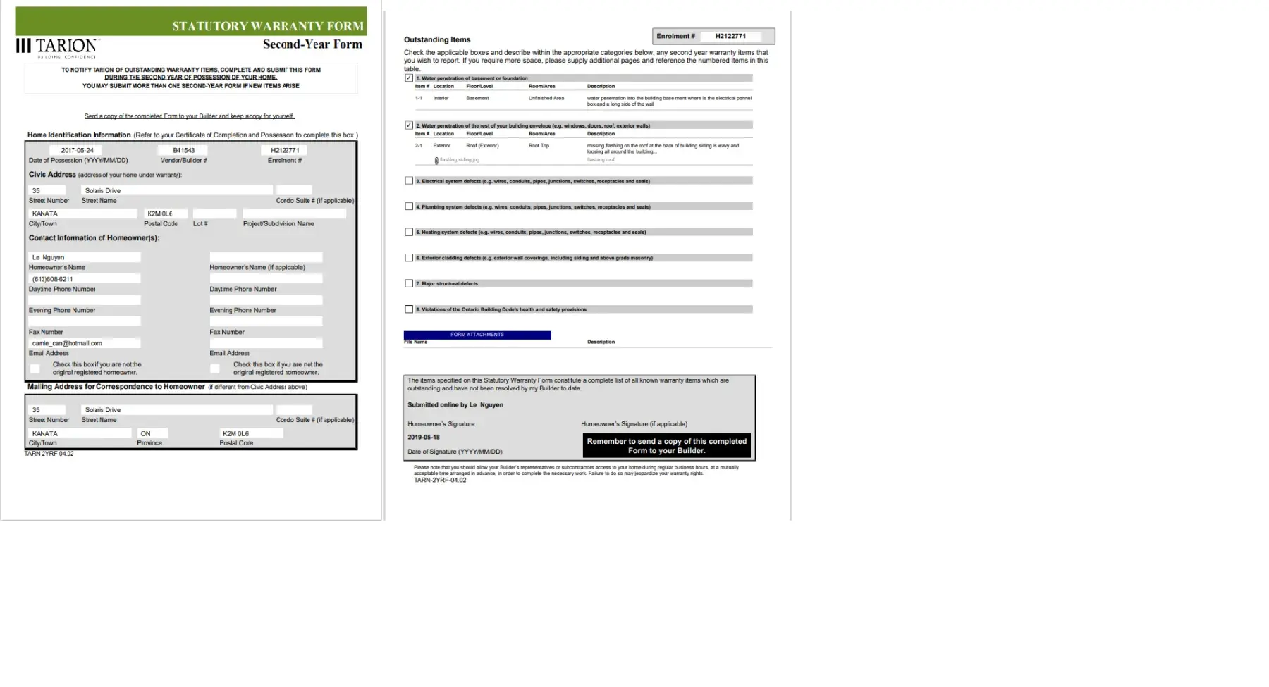 They forwarded the matter to our Home Owners Association, assigning the fault to them. However it is clear from the evidence that Mattamy Homes is responsible.