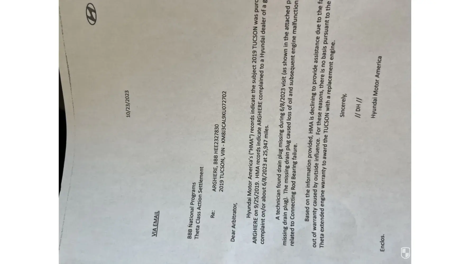 on 09/28/2022 had oil change at mavis and drain plug not put on tight enough and came off as I was driiving upstate in 06/08/2023 and all the oil came out and i had to buy a new engine for $11,000. my 2019 Hyundai Tucson was towed to the dearest dealer and that's when they found the drain plug missing. I filed report to Hyundai BBB autoline and they toild me that Mavis caused the engine t seize. I have photo o missing drain plug and findings report fro BBB autoline.