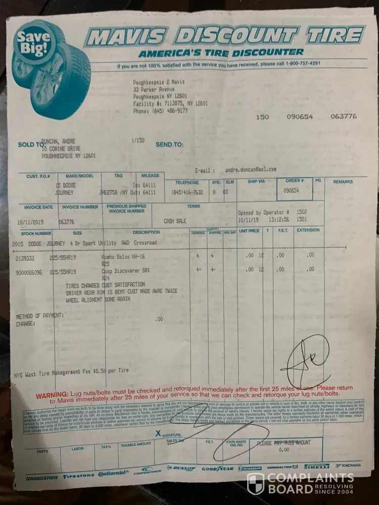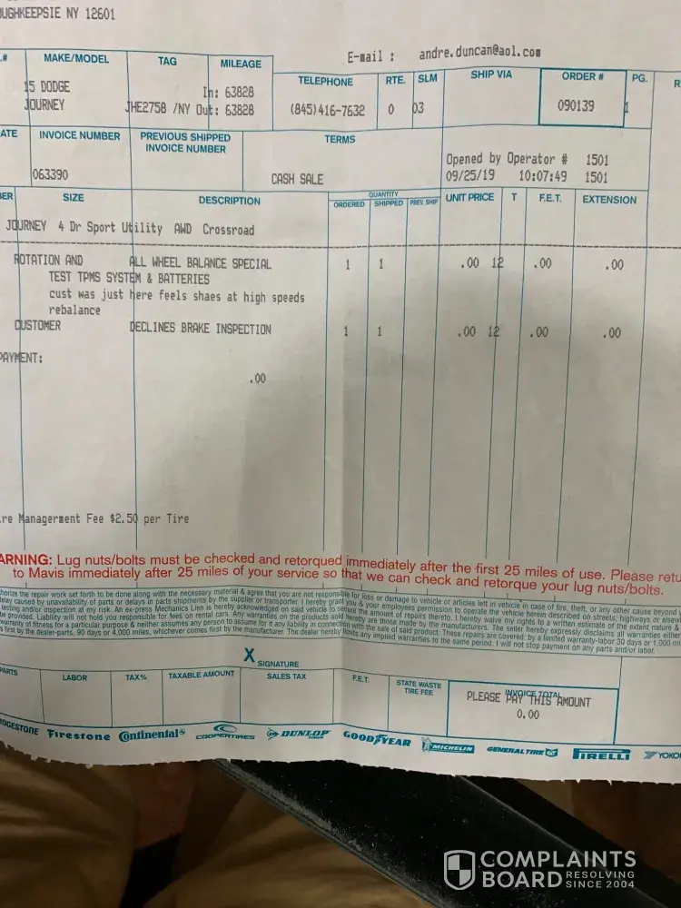 Read full complainttires and service