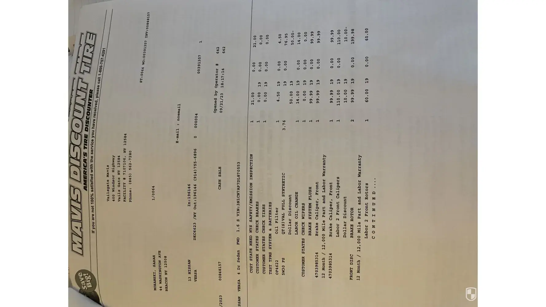 RE Somers Point Mavis 1 Bethel Road Somers Point, NJ 08244 When I was informed that the tires were ready to be installed, I received a call from the manager that the rear brakes were almost metal to metal and the front brakes were at 10% usage left. He offered to replace the brakes for $1100.00 but could do it for $931.00 As I was not experiencing any...
