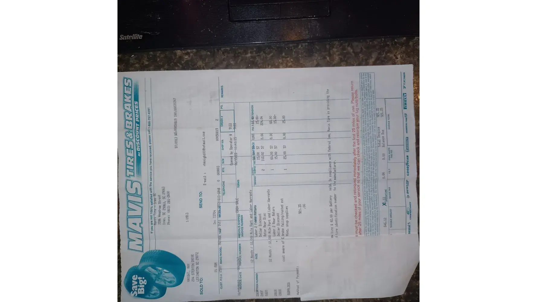 I took my 2016 Niasn Rouge to Mavis Discount Tire, Rahway, New Jersey. My Engine light was on, when the manager had my vehicle on the lift, he showed me additional work needed to be done, he never mentioned the engine light. He asked me did I have a Mavis Store card, yes I do. He convinved me to max out my Mavis store card. I had these repairs done. My...