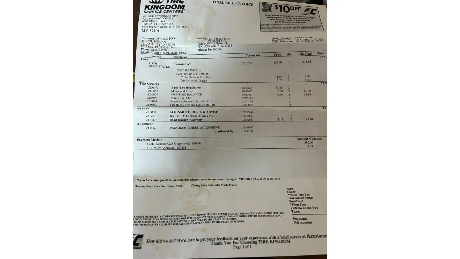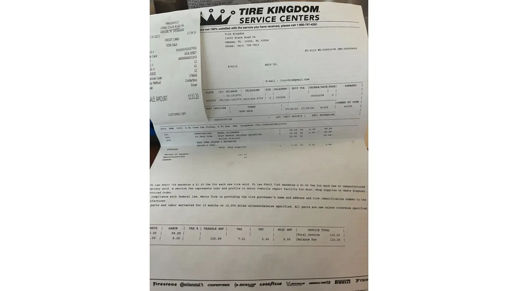 I purchased new tires under the contract that for the life of the tire I could get unlimited alignments. now that mavis has bought tire kingdom I'm told I have to pay for alignments. after preforming the alignment was when I was told id have to pay. the tire kingdom name is still on the building and the invoice. I went to tire kingdom and fully expected the contract be up helped. I believe I am due my money back as it clearly states in the contract that I have unlimited alignments for the life of my tires. not the life of the business. even such with the name on the building and the invoice you are contractually obligated to fulfill the agreement. I look forward to hearing back from you.