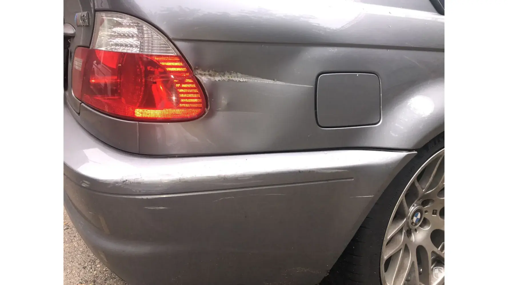 Damage to the left side of the front bumper, after an alignment. Also, leather in driver's seat has evidence of a burn in the leather.