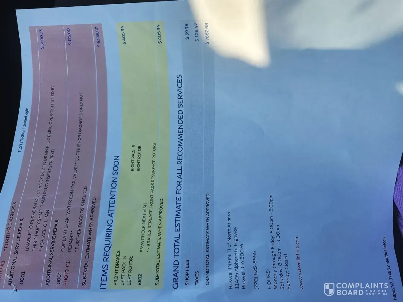 Claimed loss: My Q50 Infiniti was damaged during a oil change (oil pan/plug) oil can not be changed.