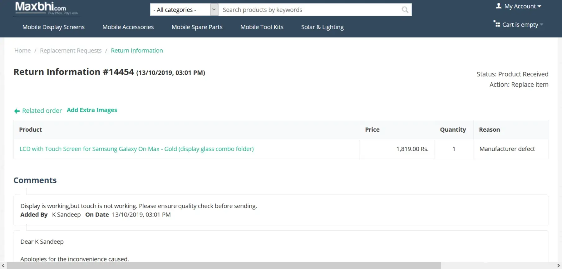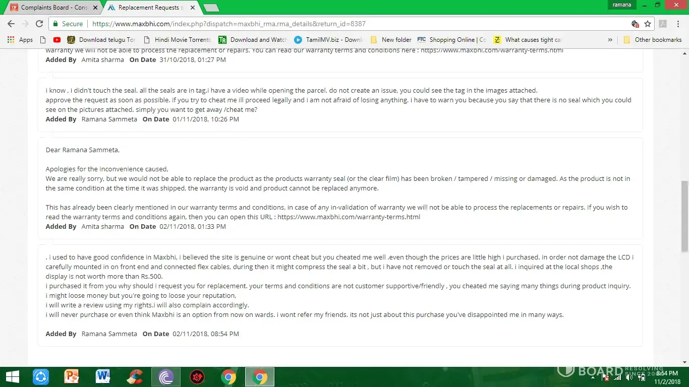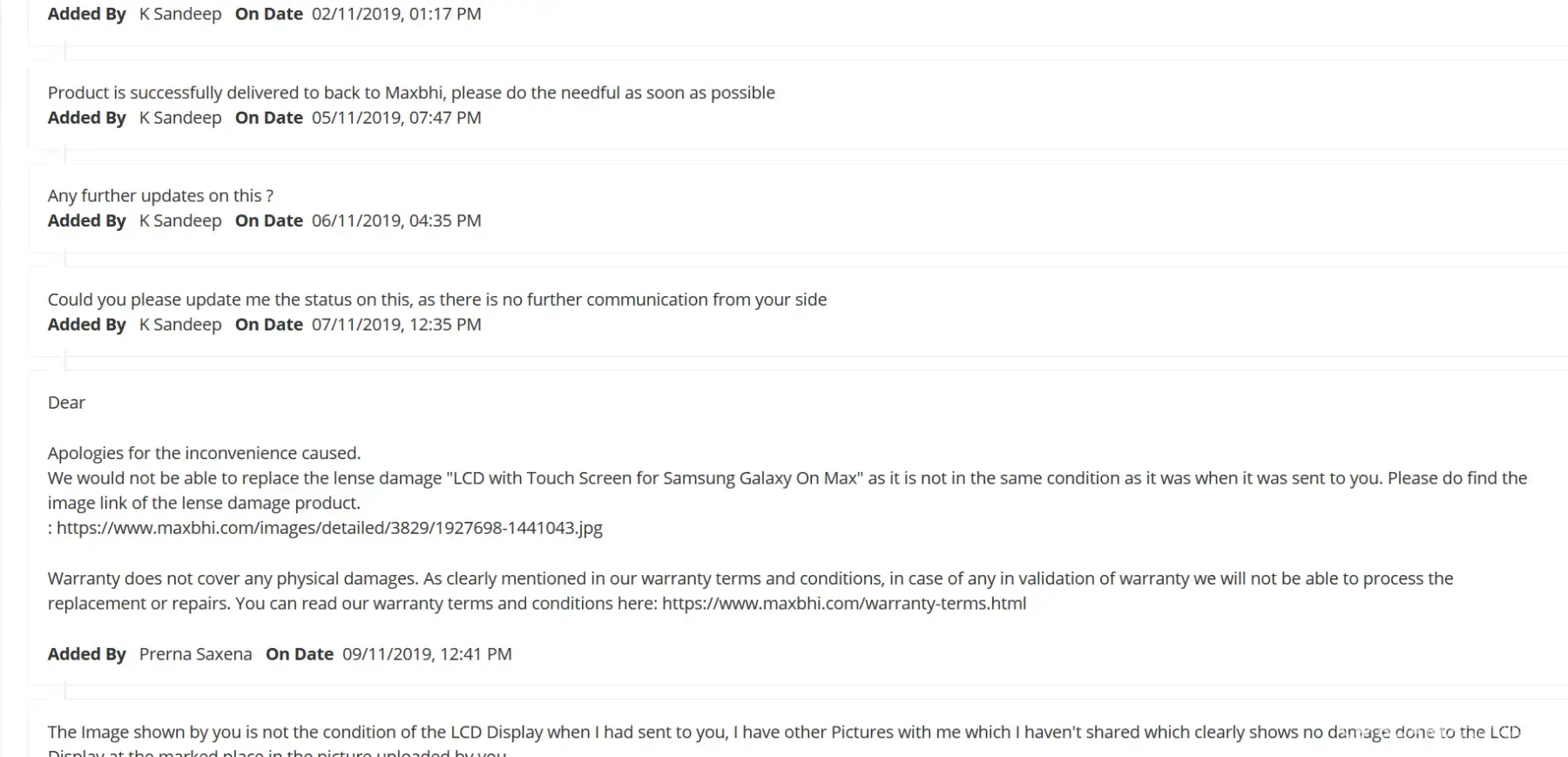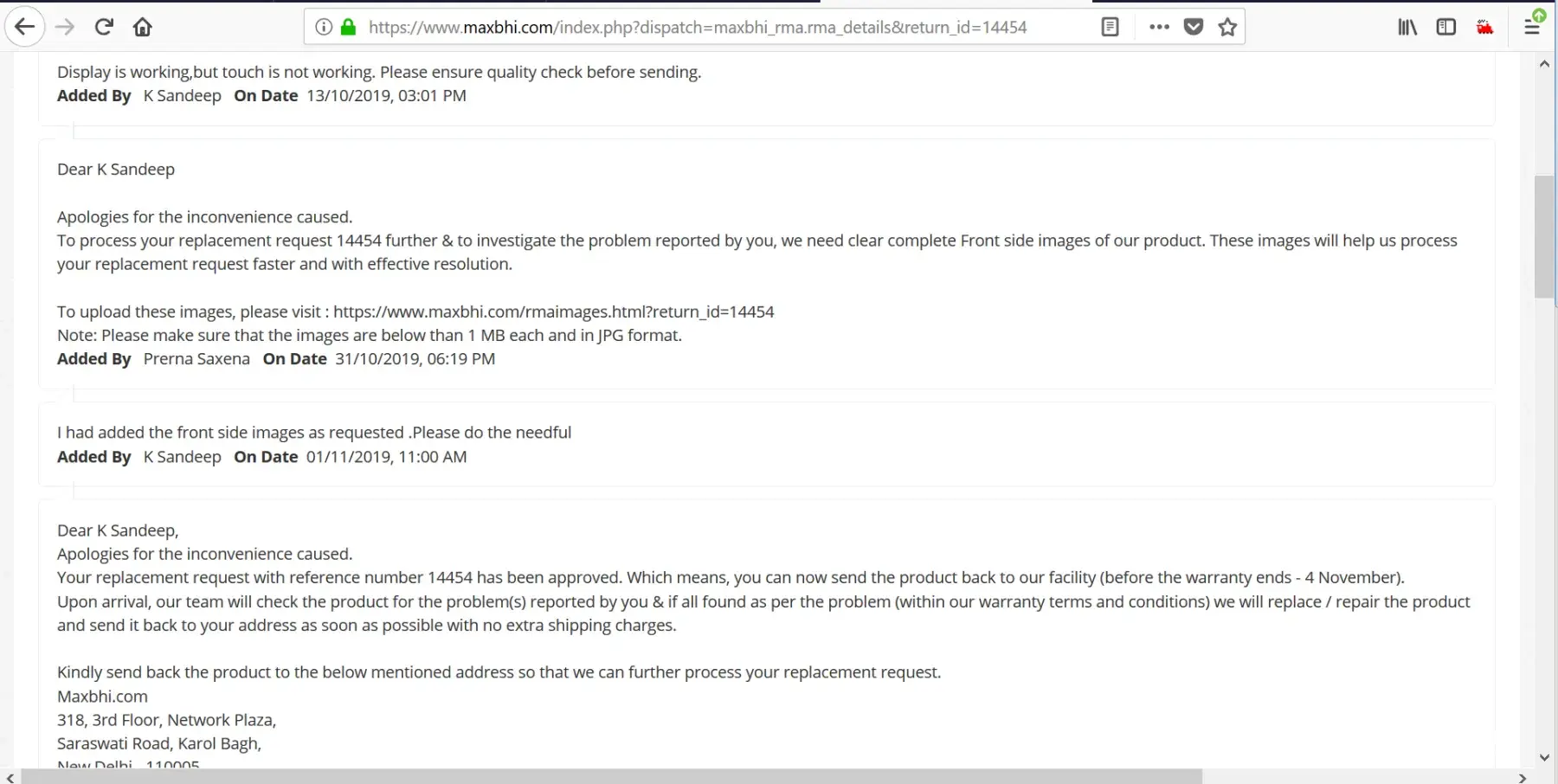 Otherwise i will make social media campaign and make full publilicty that maxbhi.com is a fraud company.