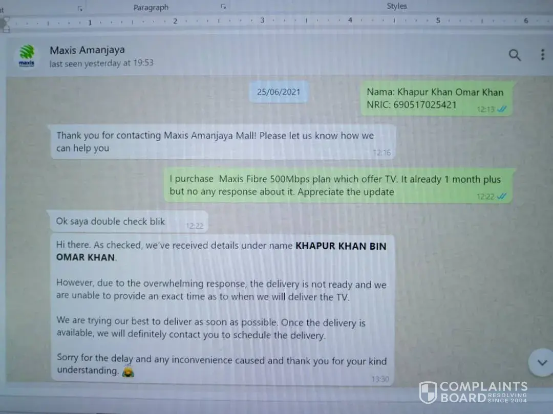 Due to it, I contacted Amanjaya Mall Sungai Petani where the mentioned due to overwhelming response, the delivery is not ready and they are unable to provide an exact time as to when they will deliver the TV. On top of it they provide to contact number of the person who will deliver the TV. Same response given when contacted the person thru WhatsApp.