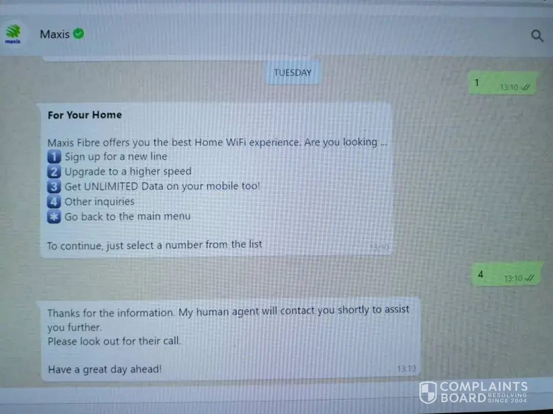 the complain is already call to maxis support central many time, but still not take any action about the issues, then the internet fee is more expensive and poor service on internet speed, and the issues is not one or two time is already many many many time already still not fixed it.