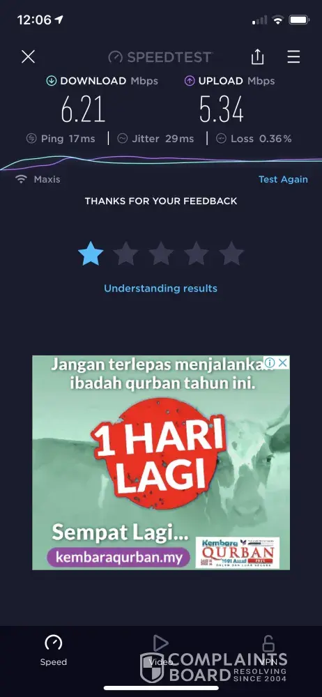 But it is waste of my monthly flat rate money for me because the Maxis coverage is very poor in this area. I feel so disappointed because I have to use the internet for work from home. Even to upload/download speed was very slow. The fast internet packeage was not that fast. Latest on 29/6/2021 10.20a.m i check the speed was 4.3Mbps only.