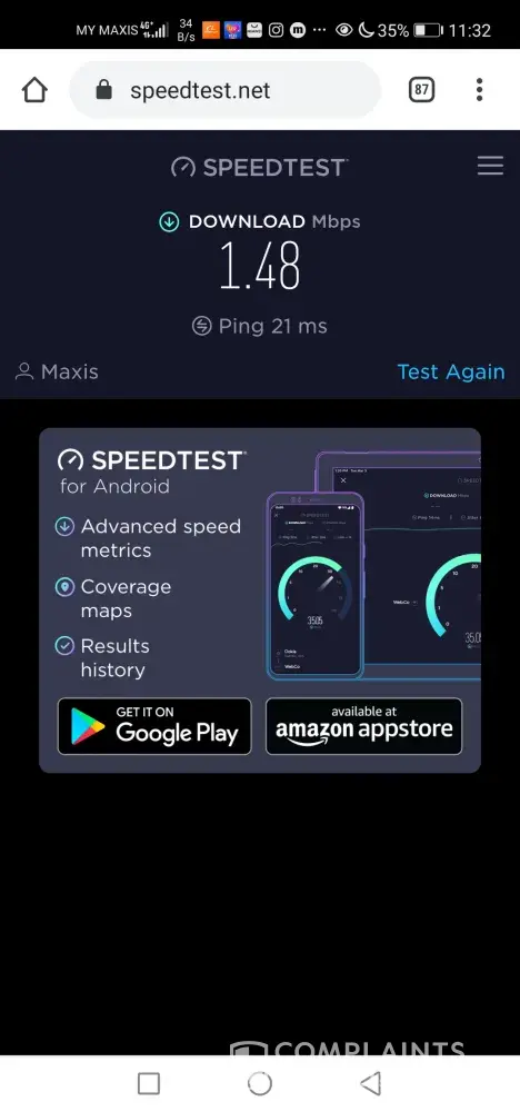 Hi my name is Chan. I have suffer from bad Internet connection at my house for the past 2 weeks and the problem is getting more serious till the connection was really bad. For your information I stay in Kuchai lama which about 10km from KL City center. I have call maxis customer service and provided them the information, they try to assist me to do the setting and restart the phone. Is still the same issue and the customer service say they don't have any network issue around my area and they will help me to launch a report. I am not sure how long does it take as the bad service is interrupting me as I was currently work from home.