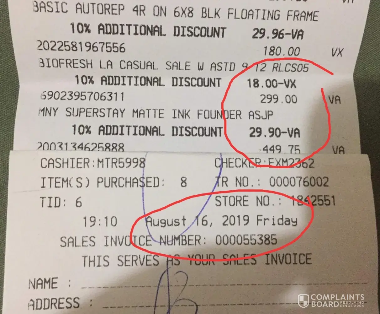 Pls attach this right receipt of last nights complaint at maybelline, sm valenzuela city