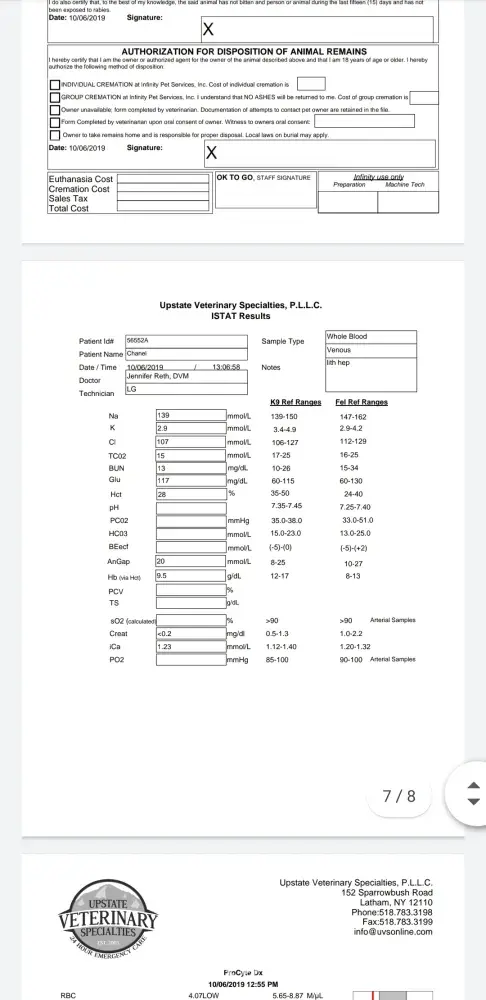 Robin's vet report... see the comment in the bottom right corner?