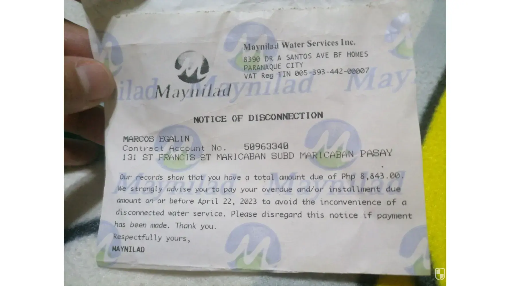 Maynilad bill