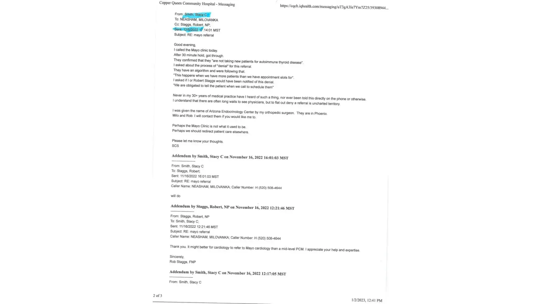 I was referred to DO Endocrinologist Craig Jenkins at the Mayo Clinic Arizona in November 2022.