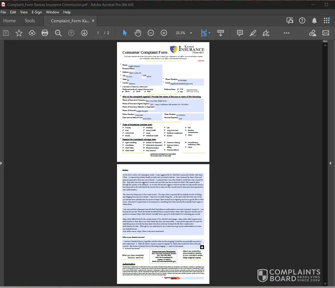 Resolution that I am interested in: Either, Mayo clinic takes responsibility for never filing a prior authorization, or Blue Cross Blue Shield pays the claim.
