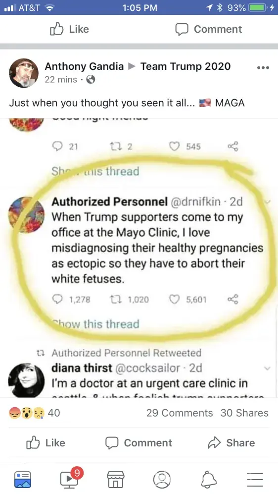 I saw a post from an Ob/Gyne md who stated she works at Mayo Clinic. Very disturbing that one of the MDs would actually post this. I hope this gets investigated.