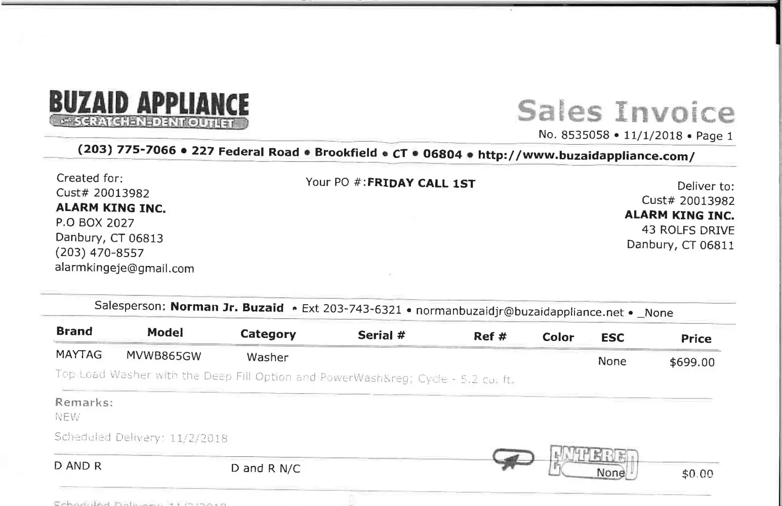 We purchased a Maytag Washer on 11/1/2018 and we bought a Lemon. Within the warranty period the washer stopped working and the main board was replaced. Recently 12/30/2021 the washer would not power up and we called the 800# for a service Appt. The earliest was 1/5/22. The service tech said it was the main board again. We asked about the 10yr warranty sticker that was still on the washer, and he replied it only covered certain parts, which is really false advertising. With all the problems with this washer and the cost of labor plus the part it was not worth it to have it repaired. The tech clearly said this washer should not have these issues due to the age of the washer and already having the board replaced once. I have attached my receipt and either want a new washer or a reimbursement check for purchasing a Lemon.