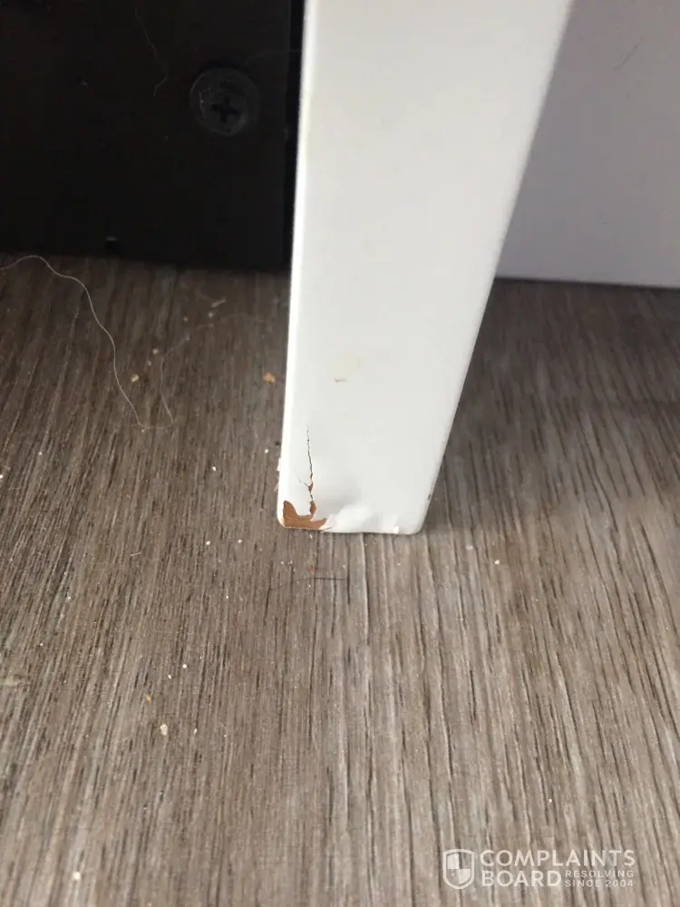 Bought at home depot red deer alberta canada on march 24/17. The door leaked water all over my kitchen floor. I called extended service number, and they sent out a repair guy on sept 12/17 with parts already, even before he had done any troubleshooting? Parts were new sliding rails. New rails were 1/16" shorter than original which means maytag knew it was a design fault causing door to not close properly. I have photos of wood that has swelled and busted on my brand new kitchen. It is the piece to the right of the dishwasher in photo. As you guys obviously knew about the issue with this model and didn't do any changes to fix the problem before it was sold to me, then I would like you to pay for the kitchen installers to replace the one piece of damaged wood. I have photos attached. I can get an estimate for you for the repair if required. I trust you will take care of this issue asap. Thank you. Steven cubby