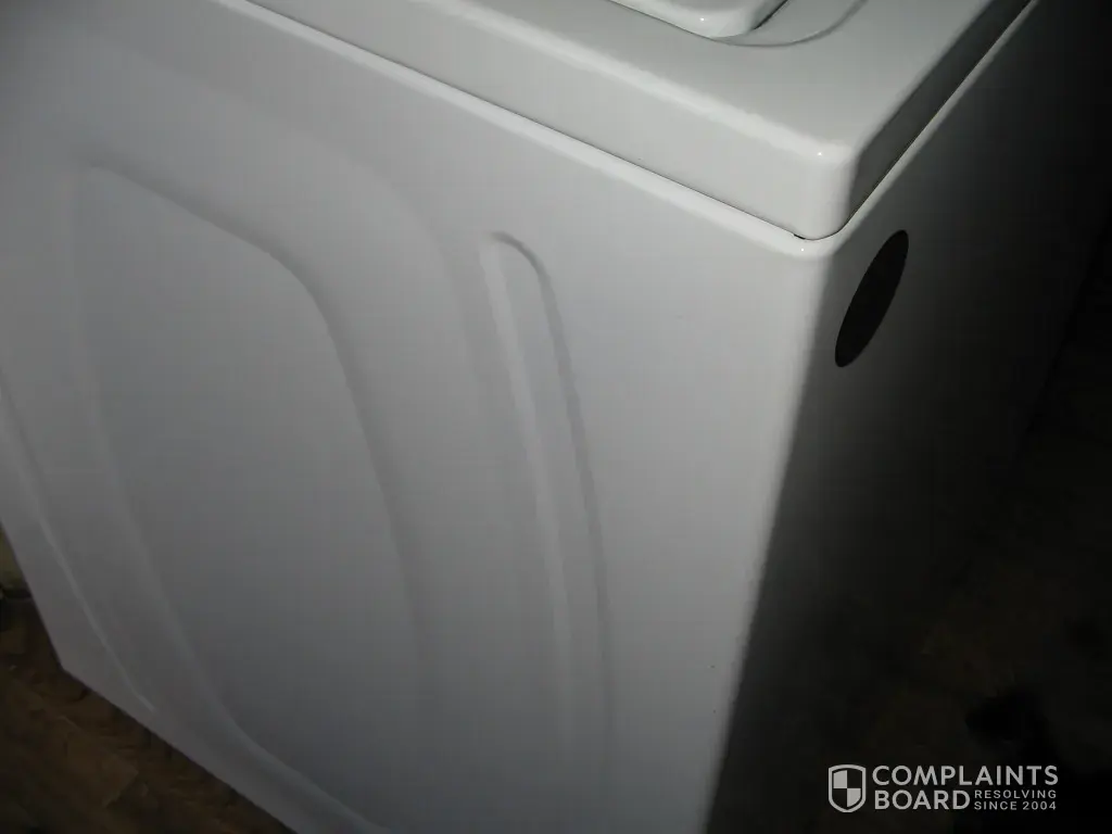 We purchased this washer and dryer combination from Lowe's about 2 years ago. We figured these would be robust designs based on the 'Commercial Technology' declaration on the machines. We noticed that we were getting steam/moisture on the outside of the top-loading door on the washer. Upon inspection I found that the left-side door hinge housing was cracked. This allows the door to protrude upwards under the spring tension of the door hinge mechanism.