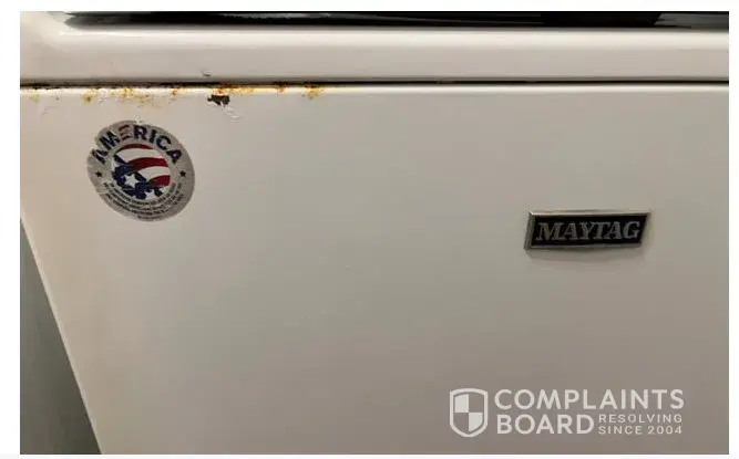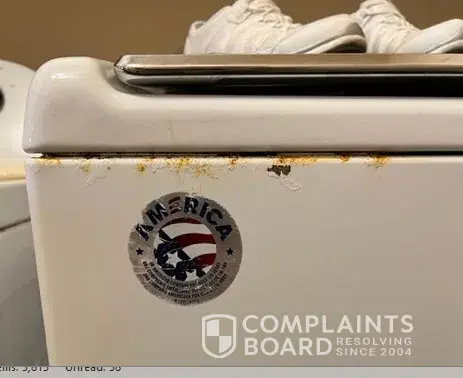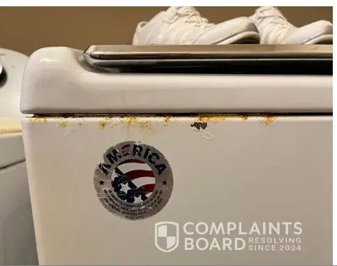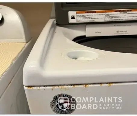 outside of case rusting where top meets the case purchased 3-29-19. bought 5 yr warranty..see photo...never used bleach in machine