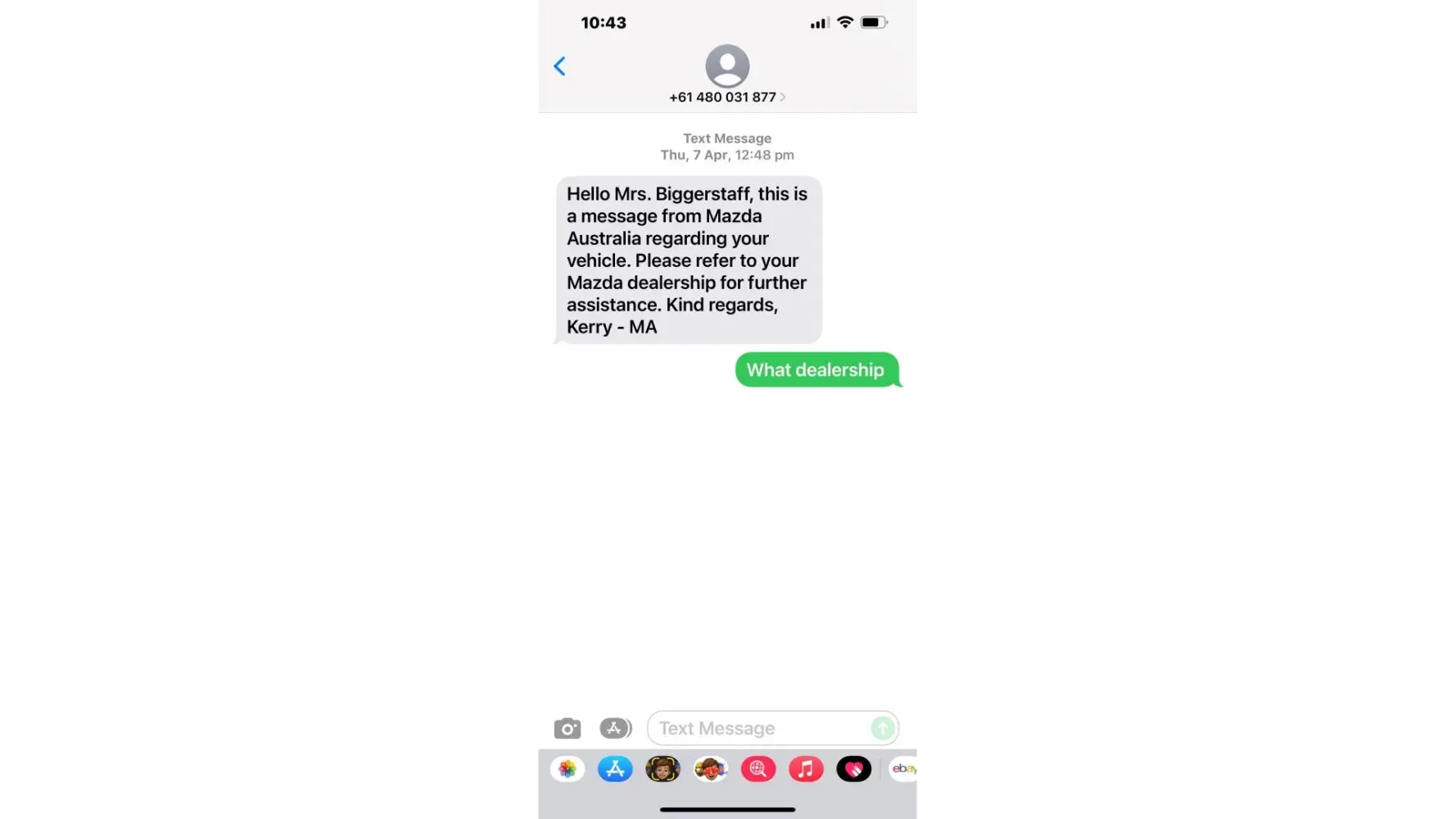 - Husband who is highly annoyed cause now its APRIL 2022 drops off Mazda to Mazda Launceston while I was away without my consent, does not get a hire car.