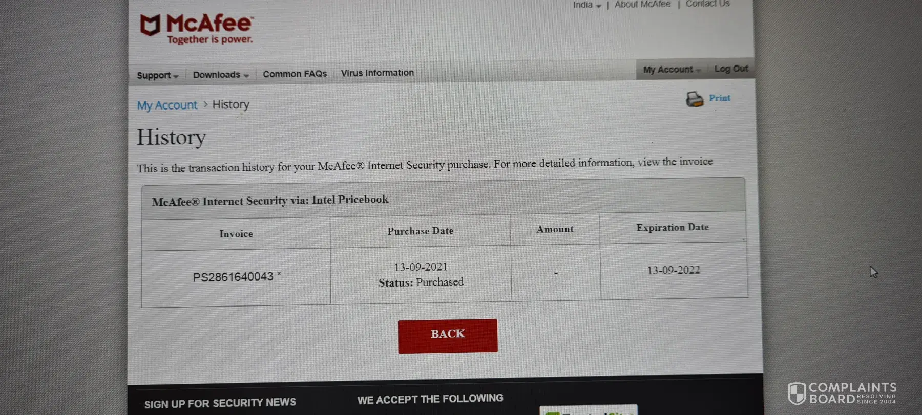 a perpetual contract with McAfee - which I certainly had not, that the @299.99