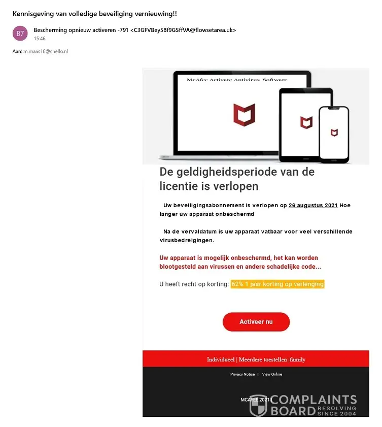 On April 14 2021 I bought a Dell PC, installed was Mcafee Livesafe 12 month subscription. About 1 month ago, in the beginning of August 2021, I started receiving various emails, sometimes more than 5 a day, in the name of Mcafee [ see attachments]. Even when I block these emails they keep coming back and everytime I do a Mcafee scan the result always is "No threats found". I think the usefulness of an antivirus program is protecting a PC and stopping that kind of emails. Before Mcafee I used the AVG free antivirus program and I never had this problem.