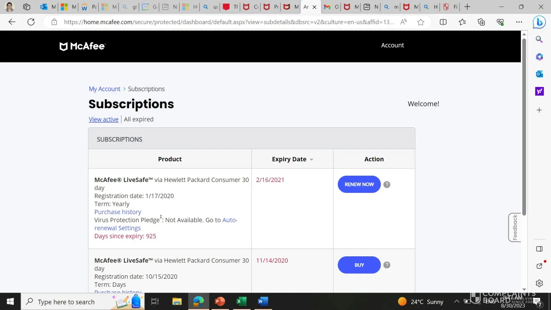 On 9/23/2023 my account with McAfee expired and I had 5 virus infecting my