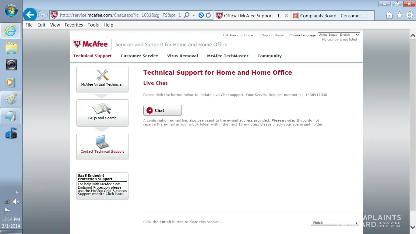My first request and following complaint have gone unanswered by McAfee tech.support/customer service.