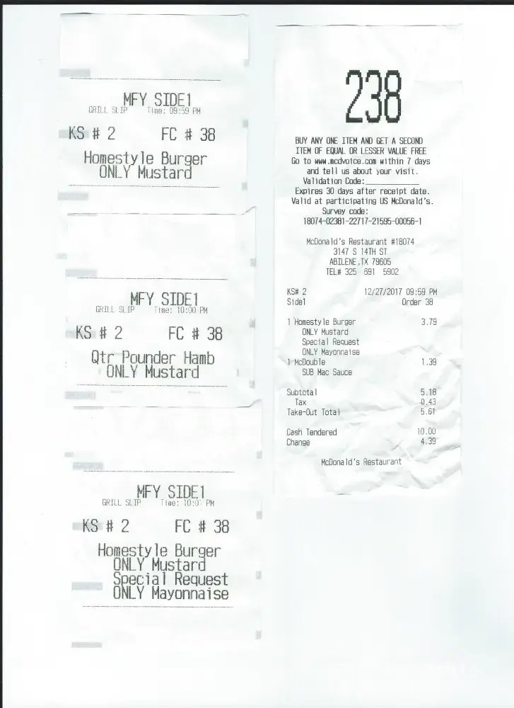 ordering order not read back end up wrong order took home had to eat because I was diabetic called explained store18074 abilene, texas