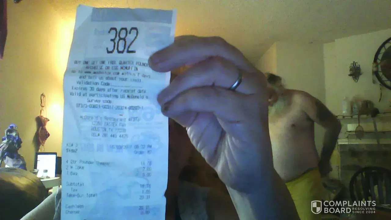 I was charged $20.31 for what was supposed to be 4 mcdoubles & two medium cokes. my husband & i had drove in from fort worth & we were hungry before going to see my new niece.