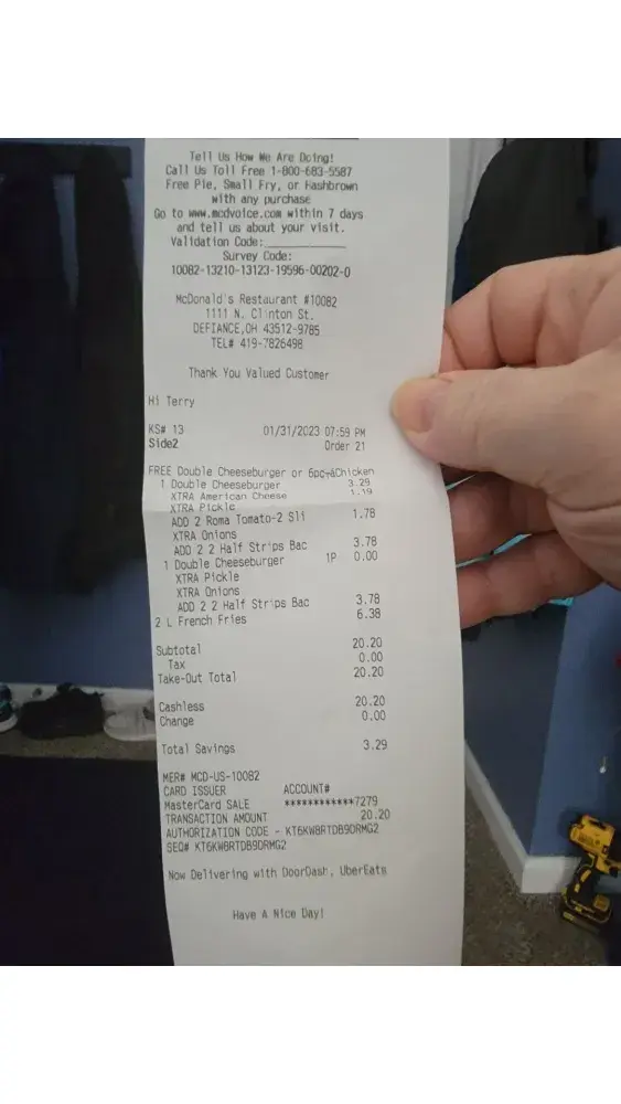 Read full complaintMcDonalds #6908 Order 01