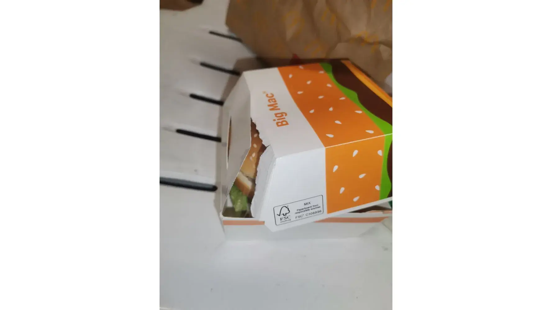 I ordered a Big Mac and when I picked it up, I saw that the middle piece of bun was actually a bottom piece from another burger.