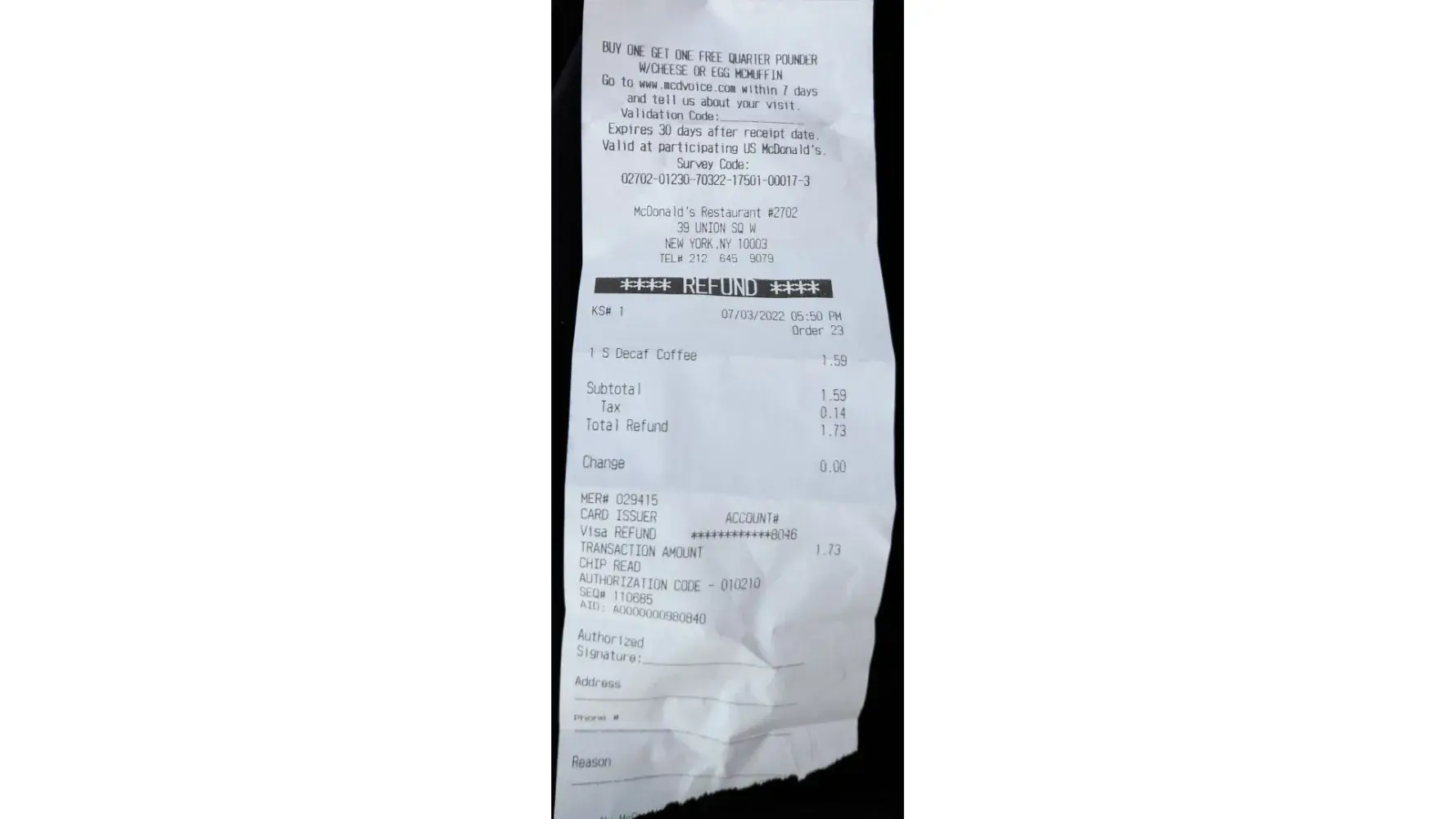It was at 6pm, 7.3.2022 in McDonalds at Union Square.I wanted get a small decaf coffee but 1st cup of coffee looked like spoil milk was there&cup's edges were dark.I asked to change it.They brewed new coffee, but before giving it to me, same team member added in my cup a small dose of coffee from someone elses red color cup that was standing there.