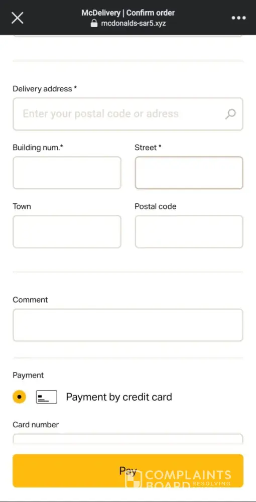 I just want to inform you about our bad experience .. we found a promo on Facebook and Instagram .., promotion from MC Donald .. with a very cheap price MC Donald burger, nuggets MC Donald product were so happy .. so we click the promotional site and turn out to be like MC Donald site we ordered food and we purchased around 30 Saudi riyals only were so happy because its cheap then we check out and then ask for credit card number and details we trusted the site because its MC Donald we pay using our credit card and then asked for OTP ..., and we entered it and from our surprise the bank send us message and from our surprise we pay thousand riyals from it .. and the company that collect the money is from Russia Moscow ... we complain right away and stopped the card .. but after a month of following up from our bank nothing happen we lost 1600 Saudi riyals from this scam... .. im writing this to inform your company somebody is using Mc Donald to deceive people so they can collect money from small people like us.. so this things will be stop .. so no one will be victimized by this scam... MY name is maria duran .. im working here in saudi arabia... life is so hard .. i hope by telling u this it will put end on this scam on social media and no more people will be victim by this. i add some photos so u will have idea .. thank you sir / mam and God BLess