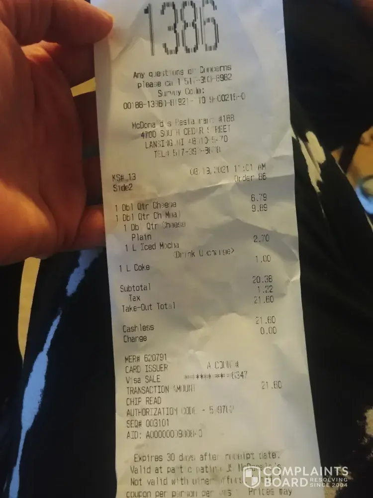 We ordered a 21 dollar order... 2 dbl quarters both came with 1 piece of meat... My iced mocha said ice mocha. But I got a caramel ice mocha... But the major problem was when I called to get it fixed the manager had an attitude which made me afraid to get new food. She was rude like they might spit in my food rude... For that kinda of money... I will never...