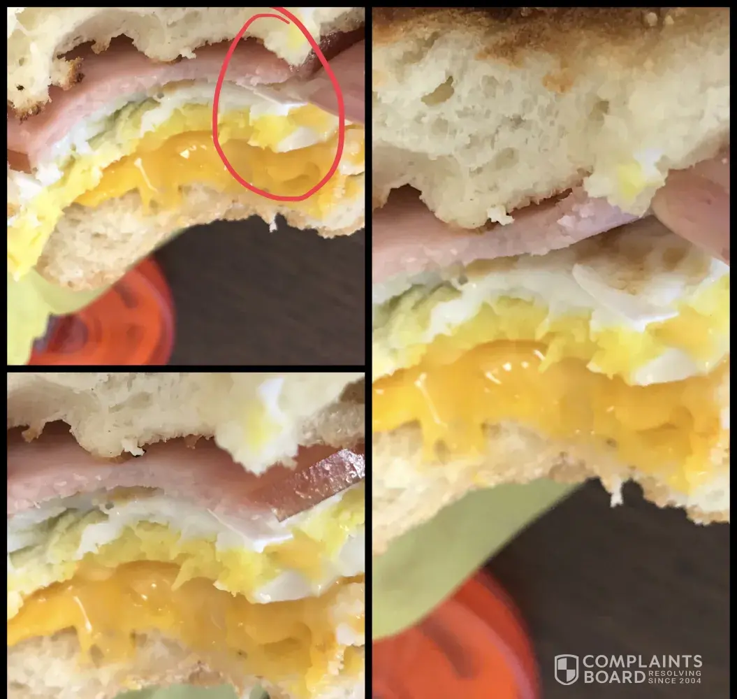 The south Mcdonalds in The town/city of Roswell NM has the most terrible service. Their waiting times are ridiculous and when you get your food it's either not the complete order or it's just not the item you ordered. You have to be carful when ordering the Egg McMuffin because the actual egg isn't cooked right or there are egg shells in it. This has happened to me twice. The picture I've attached shows a piece of egg shell but sine the egg shell is white it's a difficult to see.