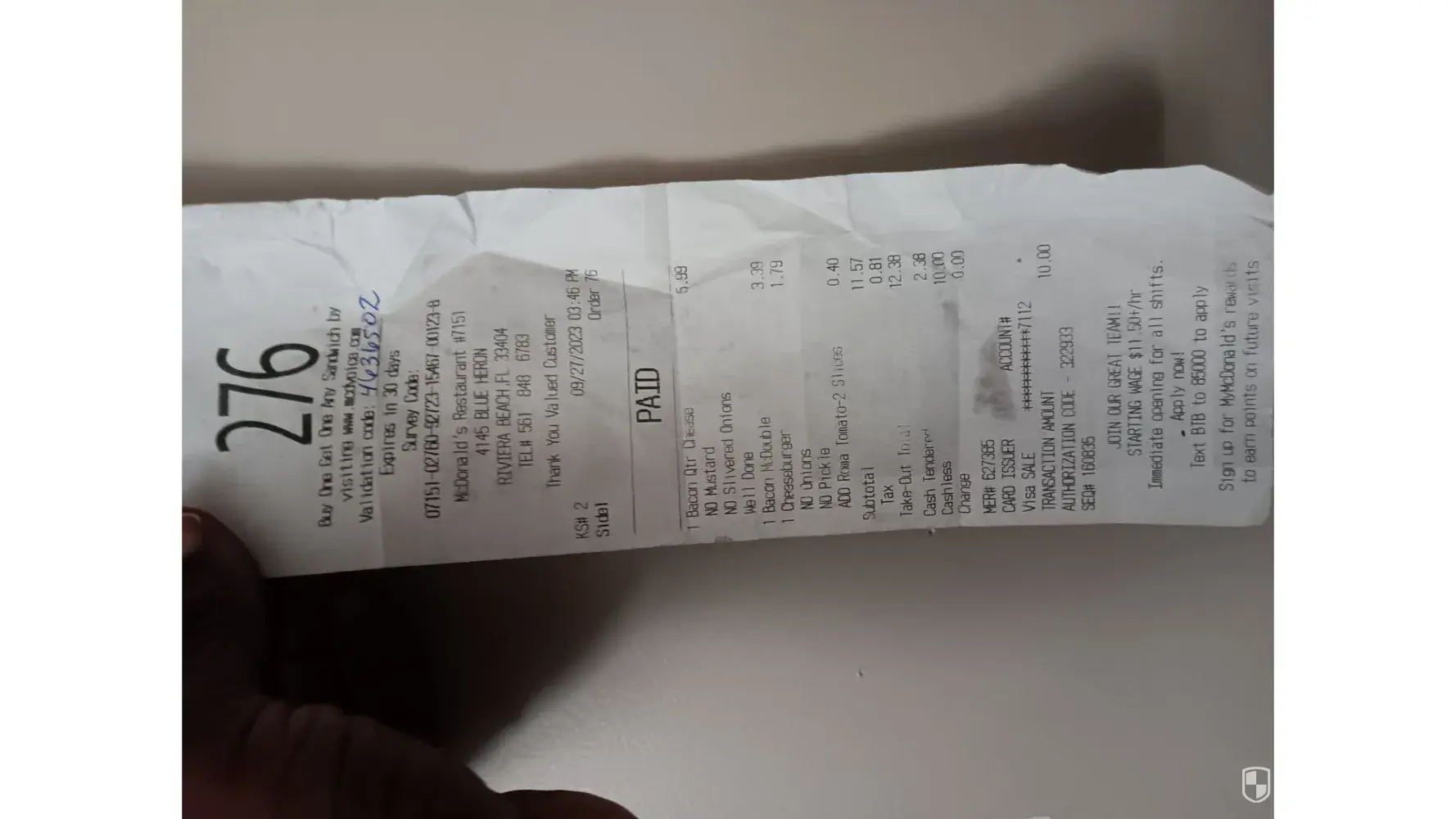 My son and I waited 53 minutes to receive our order number 76 receipt paper #276 on 09/27/2023 afternoon. I paid $10.00 using my debit card ending in 7112 and the remaining $2.38 in cash. We received our food for To-Go, but I emphasized for us to dine-in. The Bacon Quarter cheeseburger had no bacon and mustard as well as onions were still present in spite...