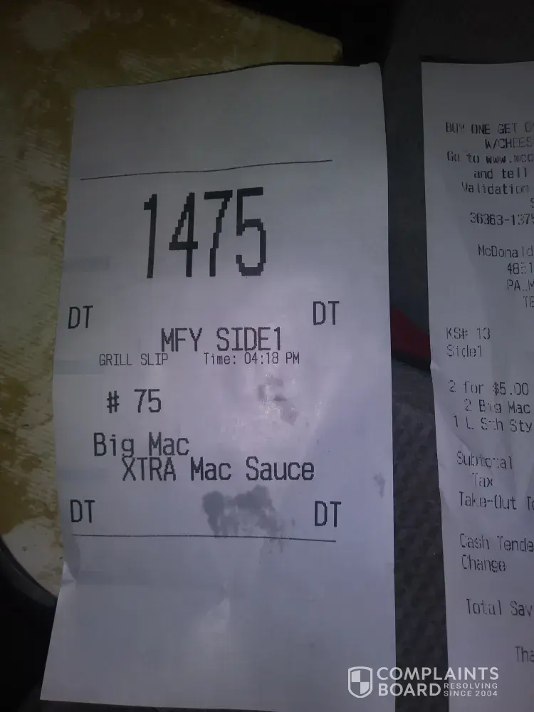 Read full complaintburgers & fries