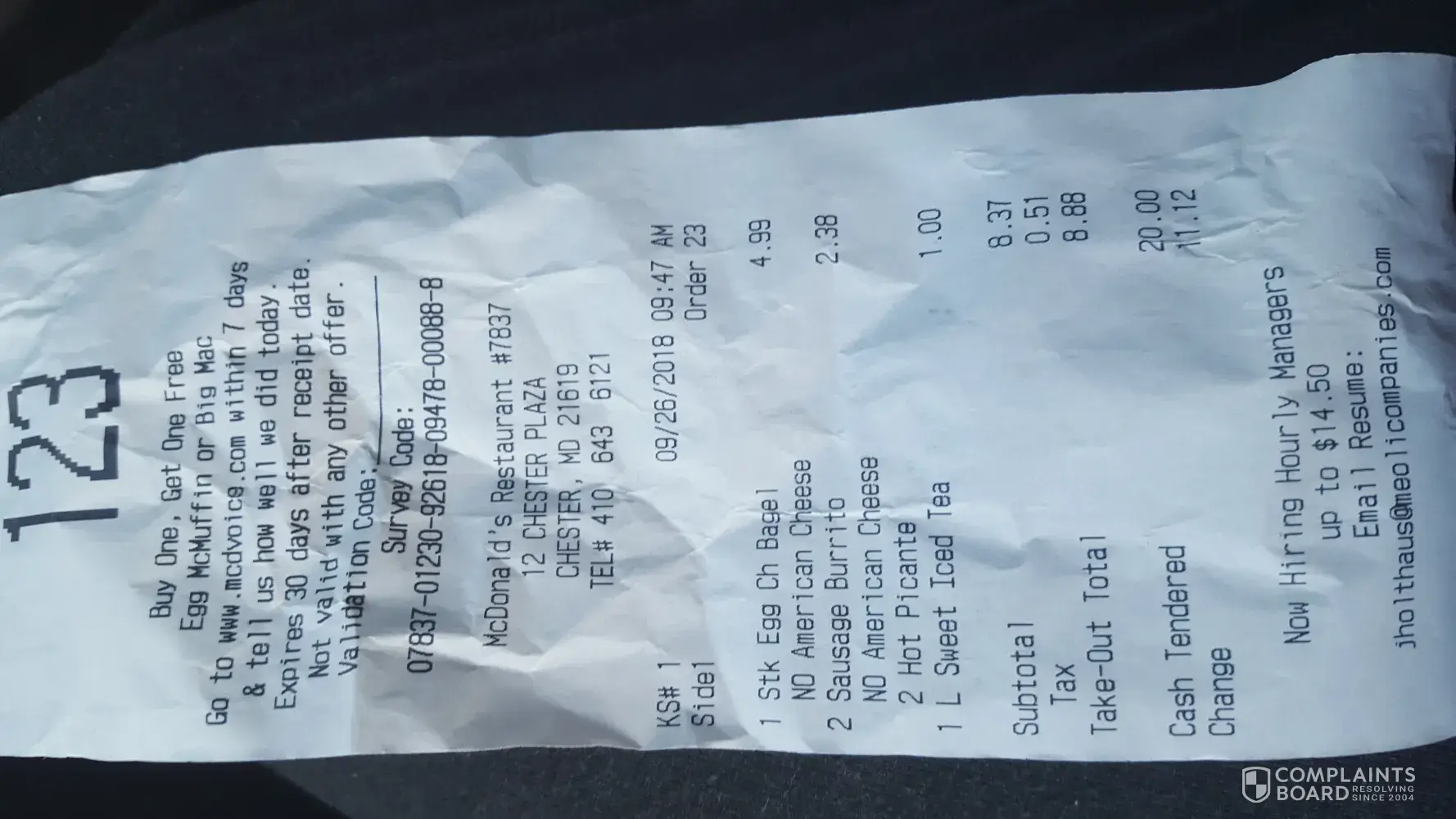 drive thru staff on a complaint