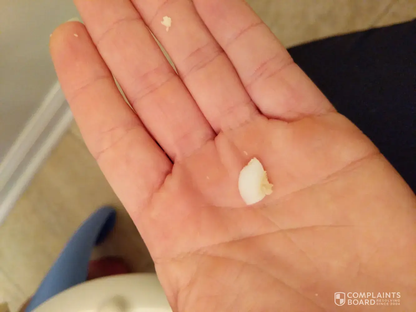 I purchased a 6 piece nugget for my 1yr old daughter, bit into one, and nearly choked on a large hunk of plastic in the nugget. I took a photo. Had I not bitten into it before giving to my daughter, she could have choked on it. This occurred at approximately 6:30pm on Aug 16, 2018 at the McDonald's in Westminster, MD. I am requesting at least to be reimbursed for our meal (nuggets, fries, drink, cheeseburger), or some type of compensation.
