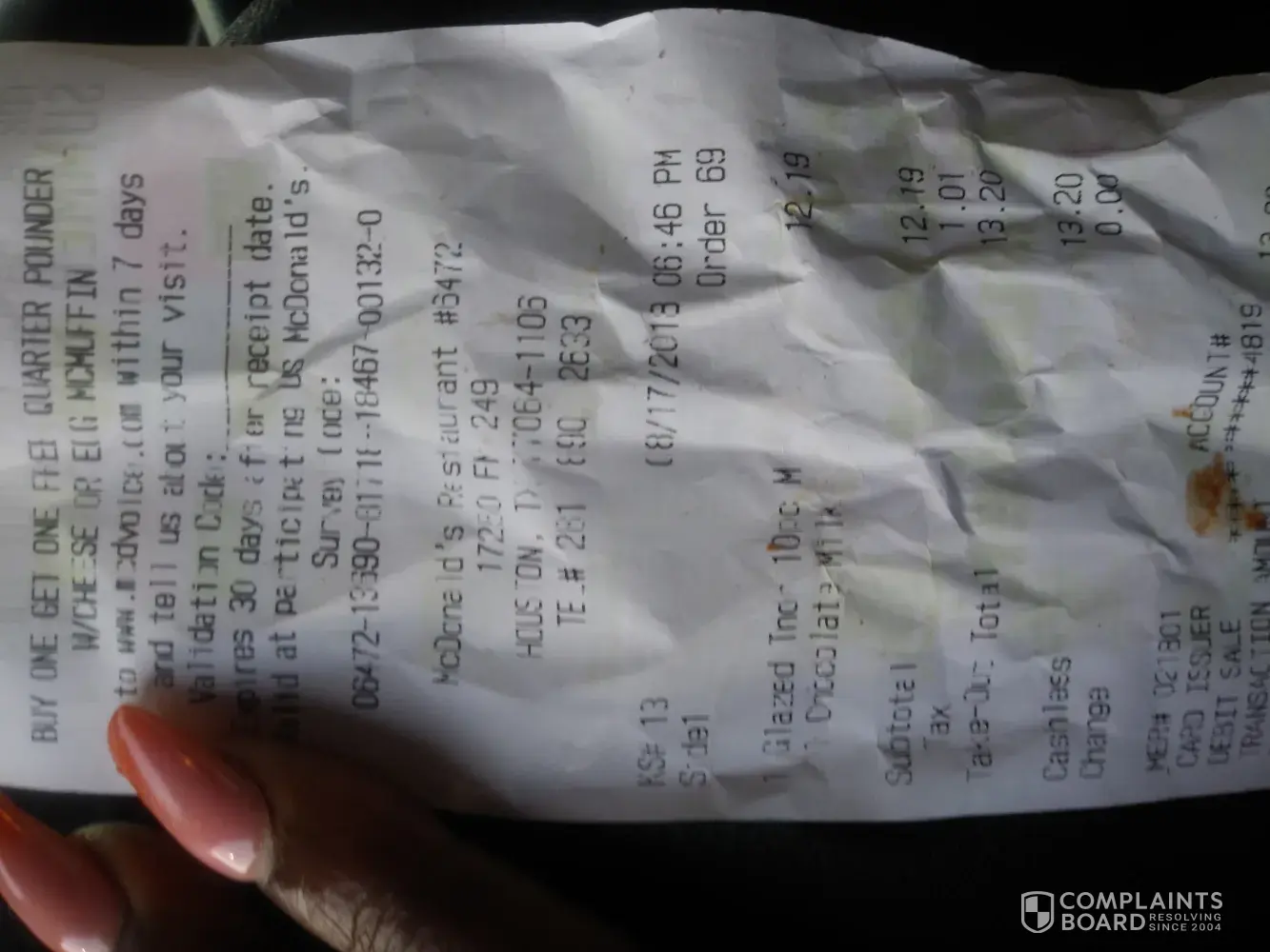 We are not happy and the receipt is so faded we can not read the code to redeem for our coupons...We will not go to that Mcdonald's again I told them corp would hear about this !