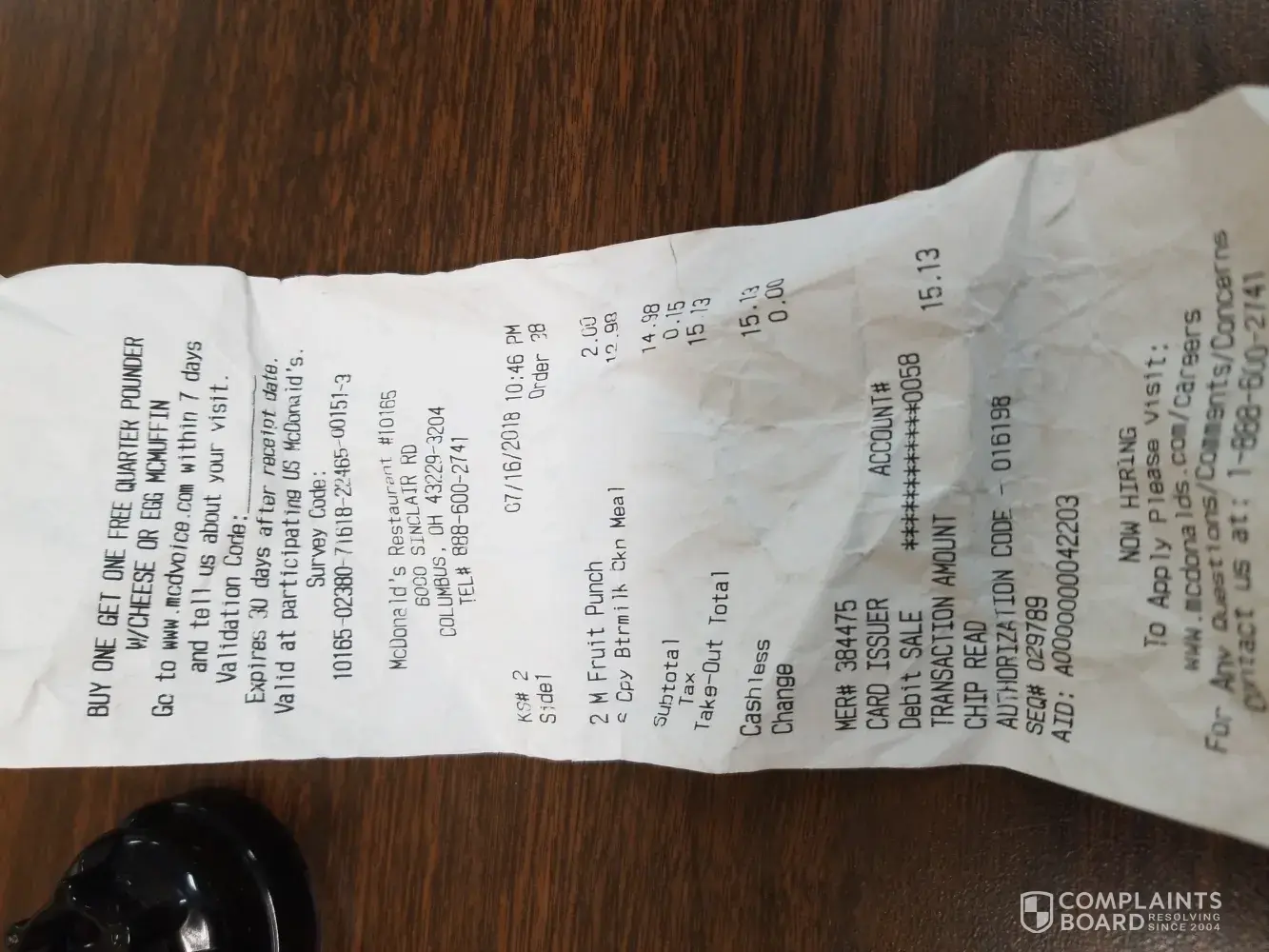I'm complaining because my kids love McDonald's and we're always going to the one on Timberlake or the one in rustburg just so happens that I had received 2 free large sandwich coupons so I went to the one on Timberlake o ordered the two large sandwiches and a chicken 3 small fries a large sweet tea and 2 Carmel frappes. first off the last asked me where's I get them then she said they expired I said well I just got an and showed her the date on the letter she said well I don't know what to tell you I can't just give you sandwiches I asked for a manager and she was rude as well I finally got the rest of my food and fries were cold she had an attitude while giving us our food and frappe was watery