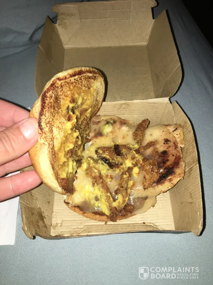 Wait time was 24 minutes after parking. First time food was brought the drink was forgotten. Checked the bag for the food. Sandwich missing. 1 box marked "double bacon smokehouse". Grilled bacon smokehouse missing. Finally got other sandwich. Got home and grilled sandwich was in the double bacon smokehouse. No double bacon smokehouse. The one that was thought to be missing had no bacon.