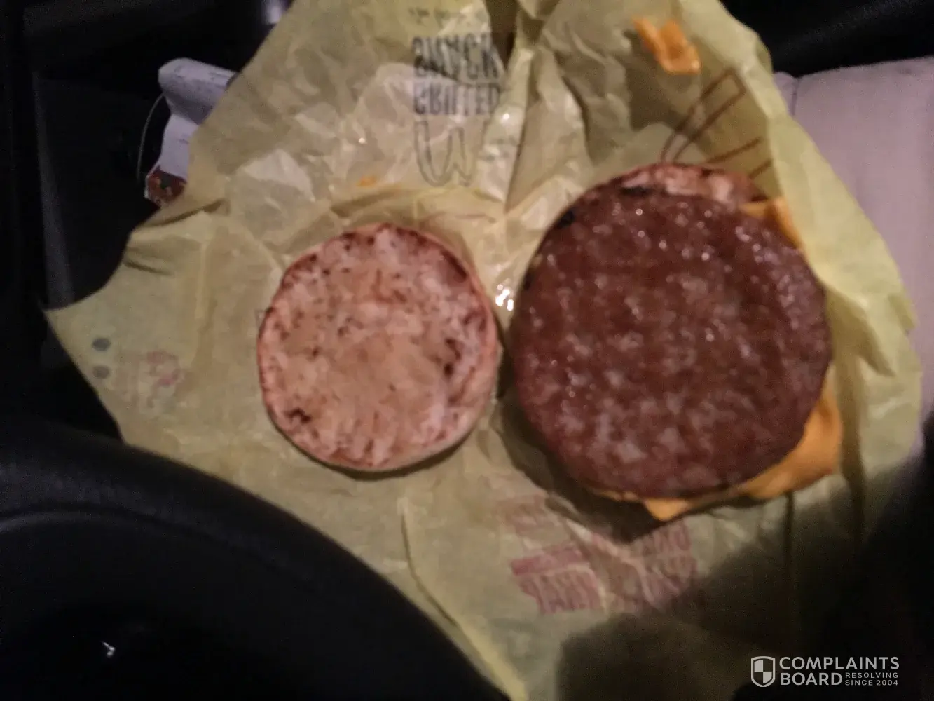 My husband was working overtime and requested that I go through the drive thru to get him dinner. I ordered two double cheeseburgers plain and a large fry. When I dropped his meal off to him, he sent me a picture of two buns. I asked him why he would send me that and he said "because that's what I got, no meat, just buns" I called and told them and they just acted like it was a joke and didn't take my complaint to heart, and said they were sorry and that they would train their new cook some more.